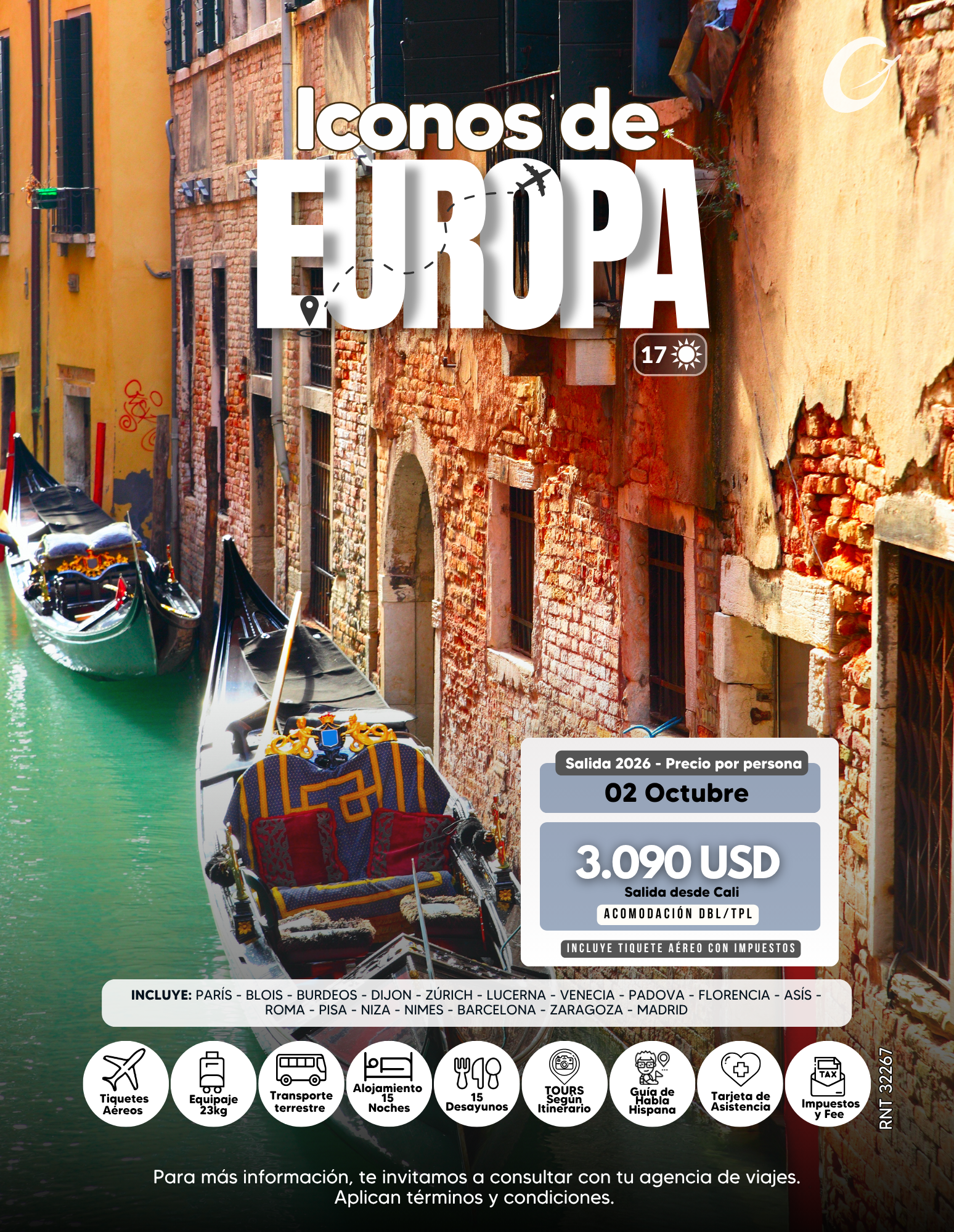 Informa que los precios y destinos publicados en esta web son válidos únicamente para el año 2026 y algunos son aproximaciones. Algunas imágenes pueden haber sido optimizadas con inteligencia artificial para resaltar la experiencia visual, no recibimos pagos por fuera de nuestras oficinas ni a través de terceros; todas las operaciones se realizan únicamente mediante nuestras sedes oficiales y convenios con agencias y agentes autorizados.