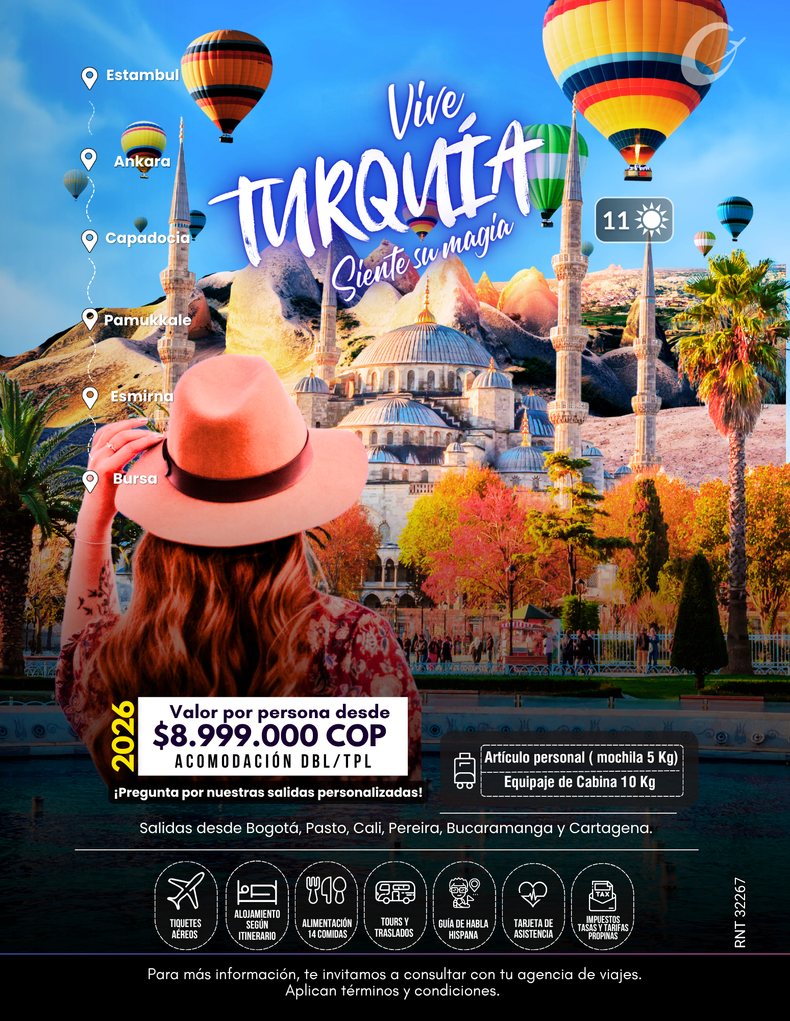 Informa que los precios y destinos publicados en esta web son válidos únicamente para el año 2026 y algunos son aproximaciones. Algunas imágenes pueden haber sido optimizadas con inteligencia artificial para resaltar la experiencia visual, no recibimos pagos por fuera de nuestras oficinas ni a través de terceros; todas las operaciones se realizan únicamente mediante nuestras sedes oficiales y convenios con agencias y agentes autorizados.