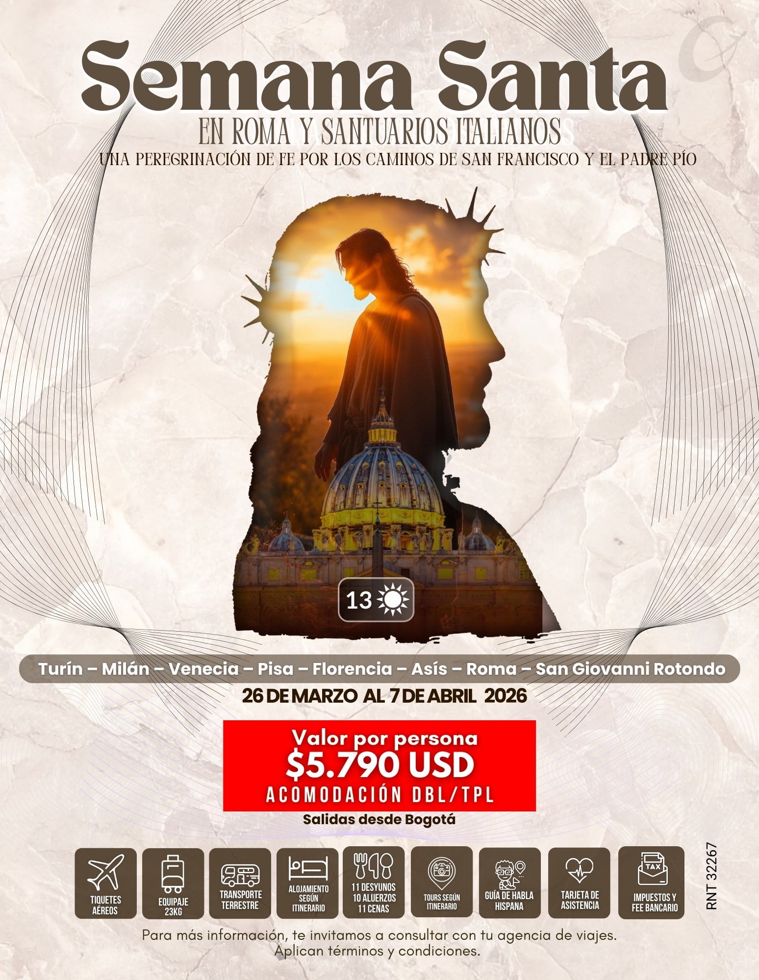 Vive una Semana Santa única en Roma y los Santuarios Italianos: una experiencia de fe, historia y belleza que transformará tu espíritu.