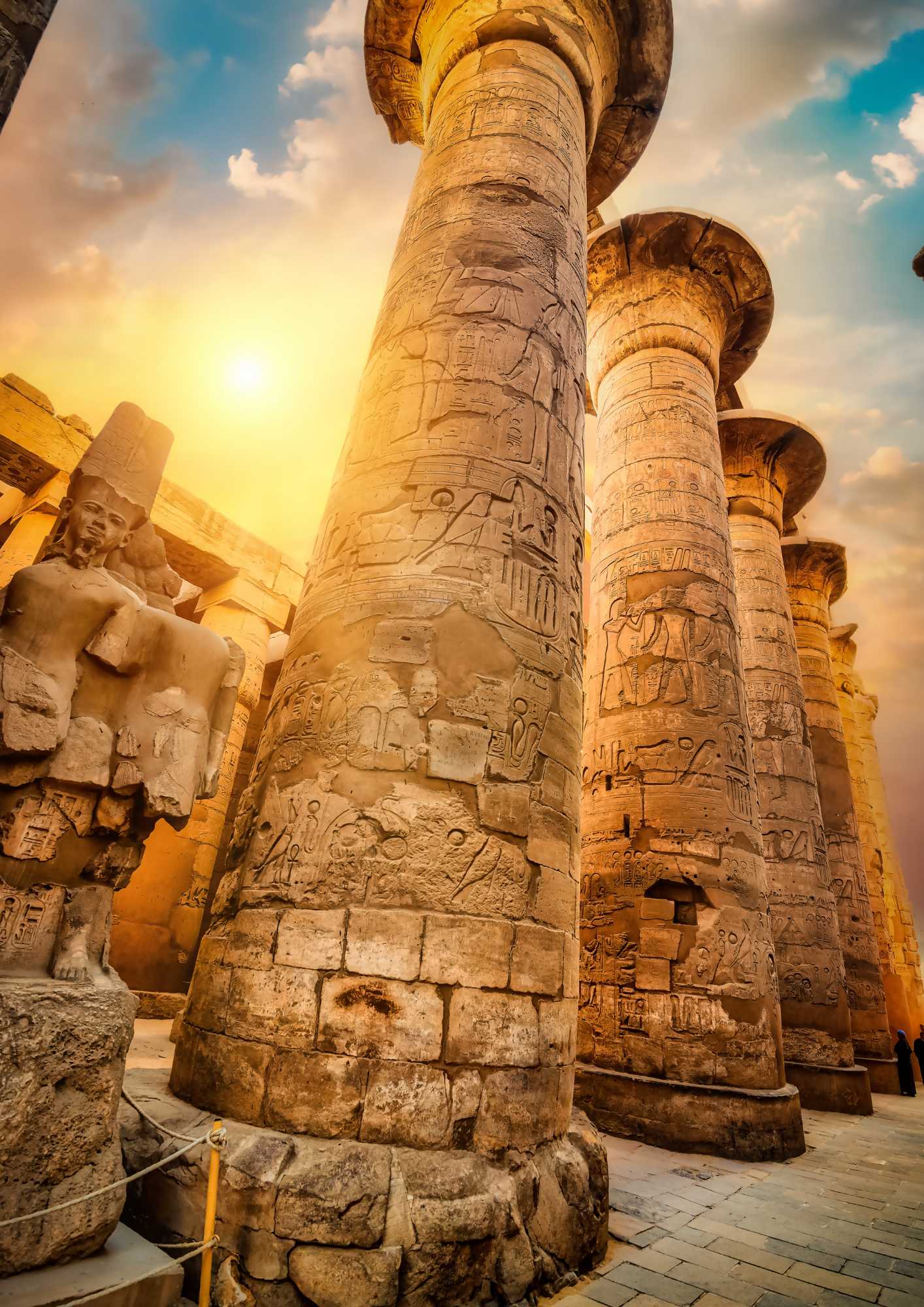 A la hora indicada, traslado al aeropuerto para tomar el vuelo con destino a Luxor. A su llegada, nuestro personal los recibirá para el traslado y embarque en un crucero de 5 estrellas. A bordo se servirán todas las comidas (pensión completa). Por la tarde, visita al imponente Templo de Karnak, principal recinto de culto dedicado al dios Amón, y al Templo de Luxor, conectado al anterior por la famosa Avenida de las Esfinges. Regreso a la motonave,