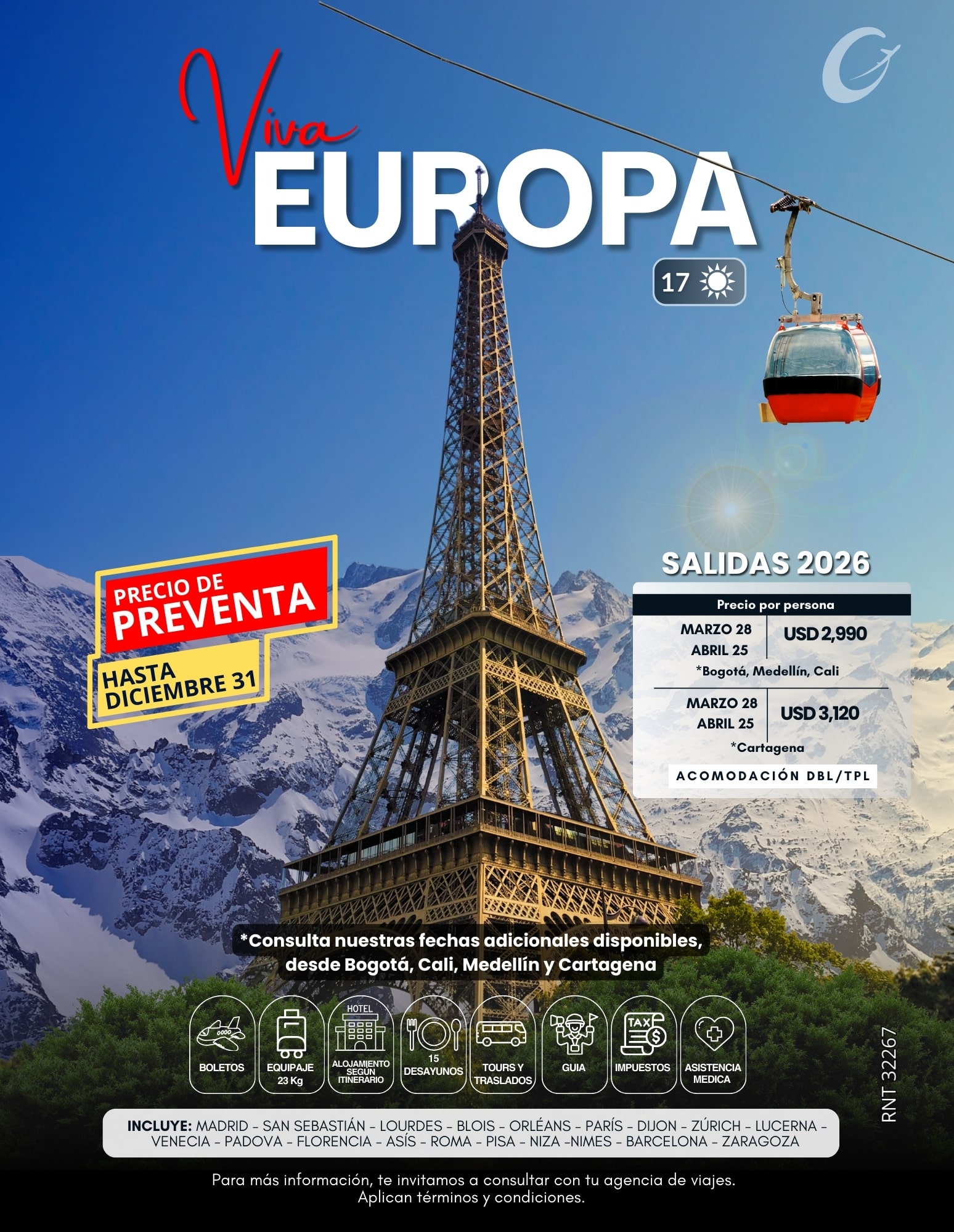 Informa que los precios y destinos publicados en esta web son válidos únicamente para el año 2025 y algunos son aproximaciones. Algunas imágenes pueden haber sido optimizadas con inteligencia artificial para resaltar la experiencia visual, no recibimos pagos por fuera de nuestras oficinas ni a través de terceros; todas las operaciones se realizan únicamente mediante nuestras sedes oficiales y convenios con agencias y agentes autorizados.