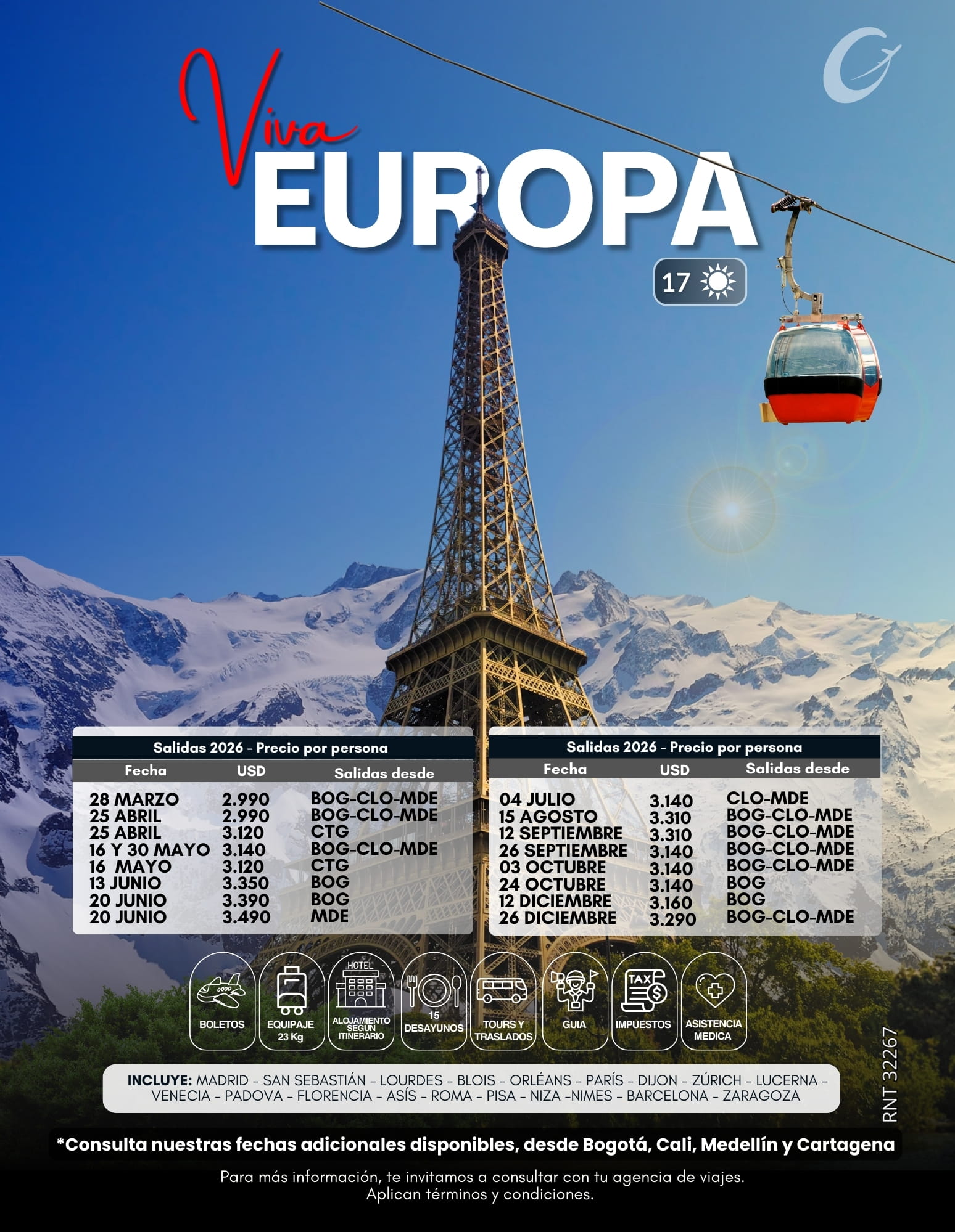 20 Junio | Bogotá | 3.390 USD |