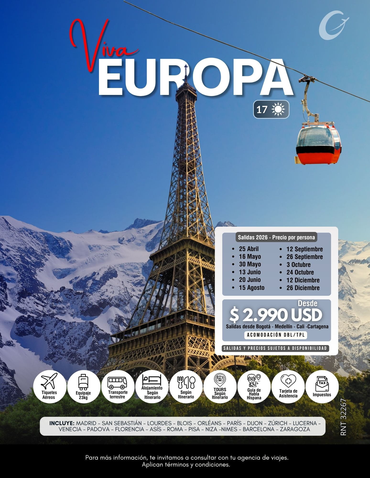 Informa que los precios y destinos publicados en esta web son válidos únicamente para el año 2026 y algunos son aproximaciones. Algunas imágenes pueden haber sido optimizadas con inteligencia artificial para resaltar la experiencia visual, no recibimos pagos por fuera de nuestras oficinas ni a través de terceros; todas las operaciones se realizan únicamente mediante nuestras sedes oficiales y convenios con agencias y agentes autorizados.
